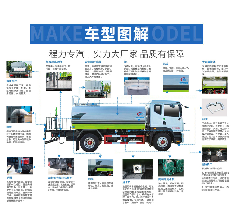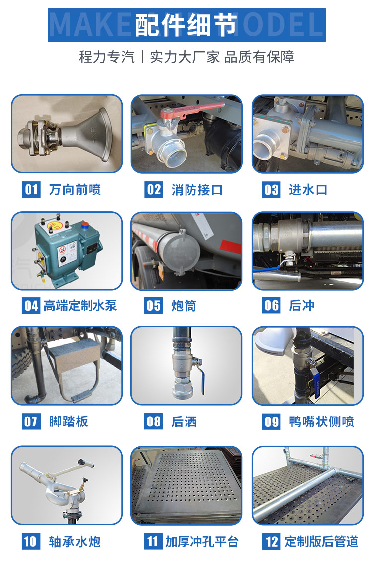 常规功能配置 | 前冲,后洒,侧喷,洒水高炮,消防接口 |