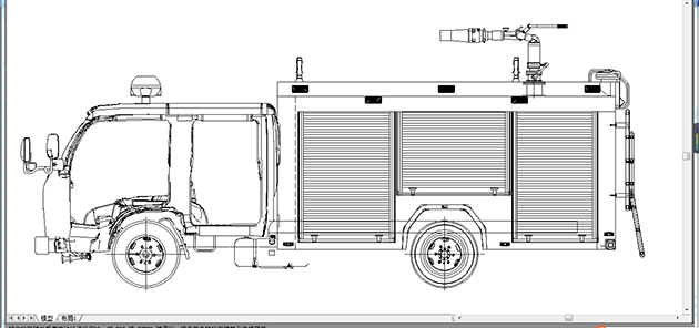 总体布置 | 整车由消防员乘员室和车身两大部分组成,车身布置采用内藏罐式结构,左右两侧为器材箱,中部为水罐,器材箱后部为泵房。 |