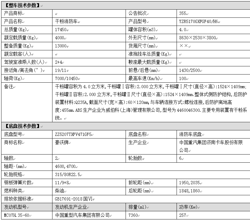 4吨干粉消防车【产品参数】