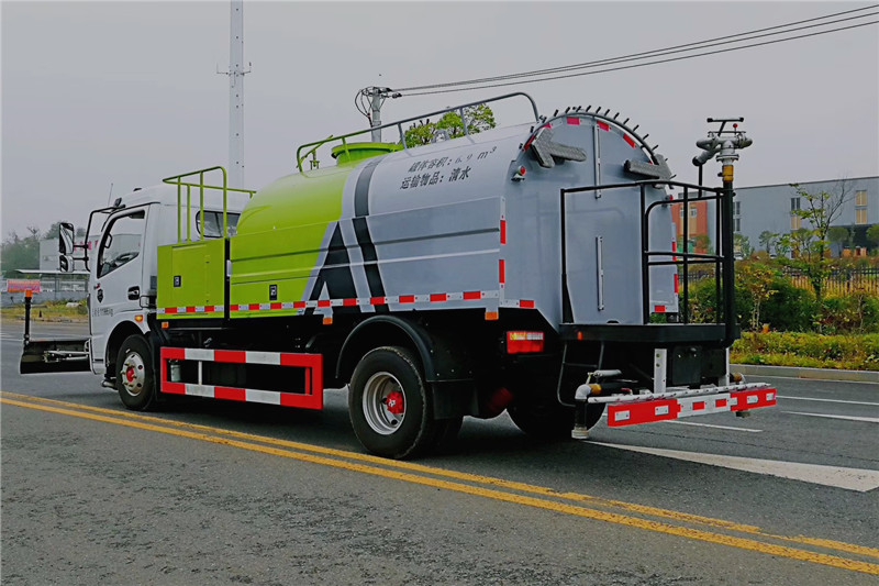 东风多利卡高压清洗车是一种双发动机、双水泵清洗车,是在标准二类底盘的基础上,加装高压冲洗系统、低压冲洗系统,由机械、液压(气路)、电器三部分合为一体的专用冲洗作业车。本车具有独立的高、低压两套水路系统,为清洗车工作提供压力水源。其工作原理是:利用高压水泵产生的高压水,经喷水架的高压喷嘴喷出,利用高压水流的动能,以高压力、低流量的方式进行清洗,强力去污,高效节水,能将路面的陈旧污渍清洗干净;或高压水经左(右)角喷喷出,清洗路缘、人行道及护栏隔离区;使用高压喷枪还可清洗路标、广告牌、高架路等;喷雾系统具有强大的喷雾降尘、喷撒空气消毒剂及调节空气湿度功能。