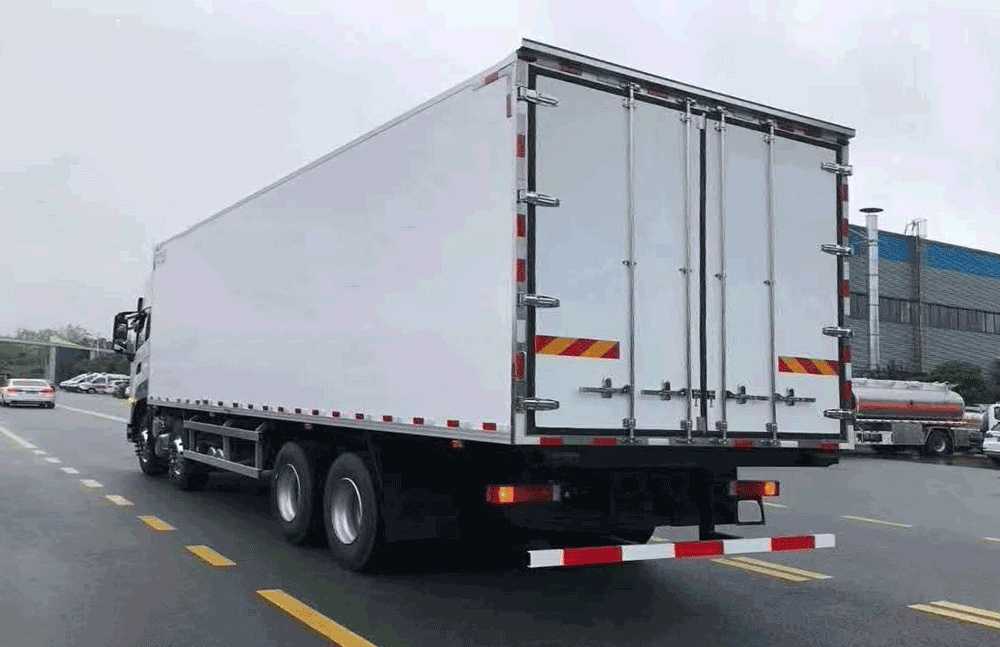 | 其他 | 随底盘选装仅高度不同的驾驶室,高顶驾驶室顶部气喇叭为选装件,驾驶室前角扰流板为选装件,选装单油箱或双油箱;货厢选装单开门,双开门和不开门型式;选装其它厂家功率相当的制冷机组,选装前置式,内置式,底置式制冷机组;选装升降尾板,尾板收起状态时的水平长度为295mm;厢体顶部封闭,不可开启;侧防护:材料Q235,螺栓连接;后下防护:材质Q235.螺栓连接,断面尺寸120×60mm,离地高度460mm;安装具有卫星定位功能的行驶记录仪;装有ABS,ABS型号/生产厂家:ABS 8/东科克诺尔商用车制动系统(十堰)有限公司;发动机DDi11E465-60对应油耗申报值37.1L/100km. | ||