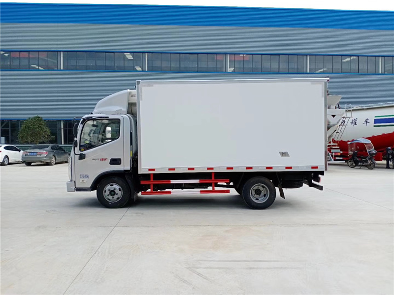 ,内衬骨架为防锈处理优质轻钢型材镀锌管,保温材料为无空隙填充聚氨酯发泡,厢体底部为铝合金花纹板或选平面纳米玻璃钢,厢体采用镀锌不锈钢包角,加厚型铝合金包边,后门框为不锈钢,加厚型不锈钢后门]合页及锁件,全车所有不锈钢部位均使用食品级304不锈钢制造,厢体内部采用ED照明灯及厢体示宽灯。